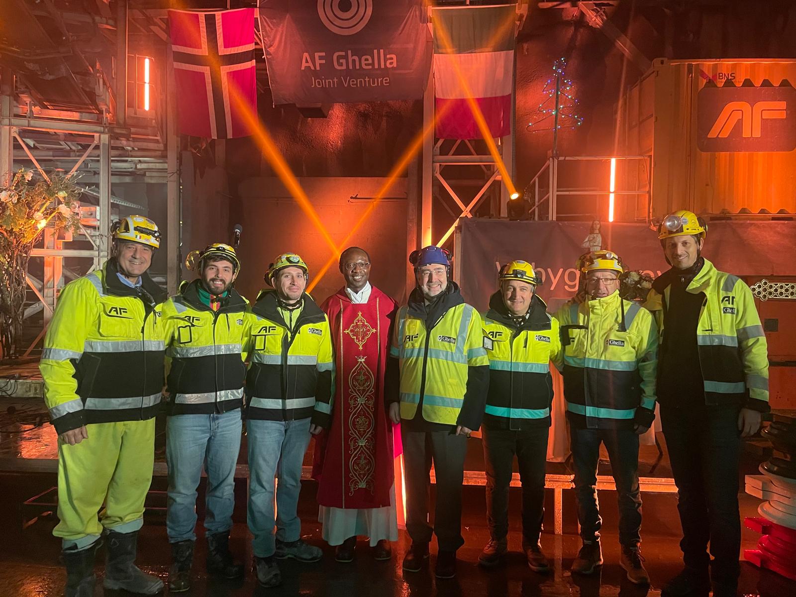 At Ghella’s invitation, the Italian Ambassador to Norway, Stefano Nicolettijoined the site workforce in celebrating the Feast of Saint Barbara, the patron saint and protector of miners, stonecutters, construction workers, and users of explosives. A multilingual mass was celebrated at more than one hundred meters underground inside the tunnel where Ghella, in joint venture with the Norwegian group AF, is carrying out the excavation works of an 11-kilometer tunnel that will provide the city of Oslo with an alternative water supply reserve for the coming decades.