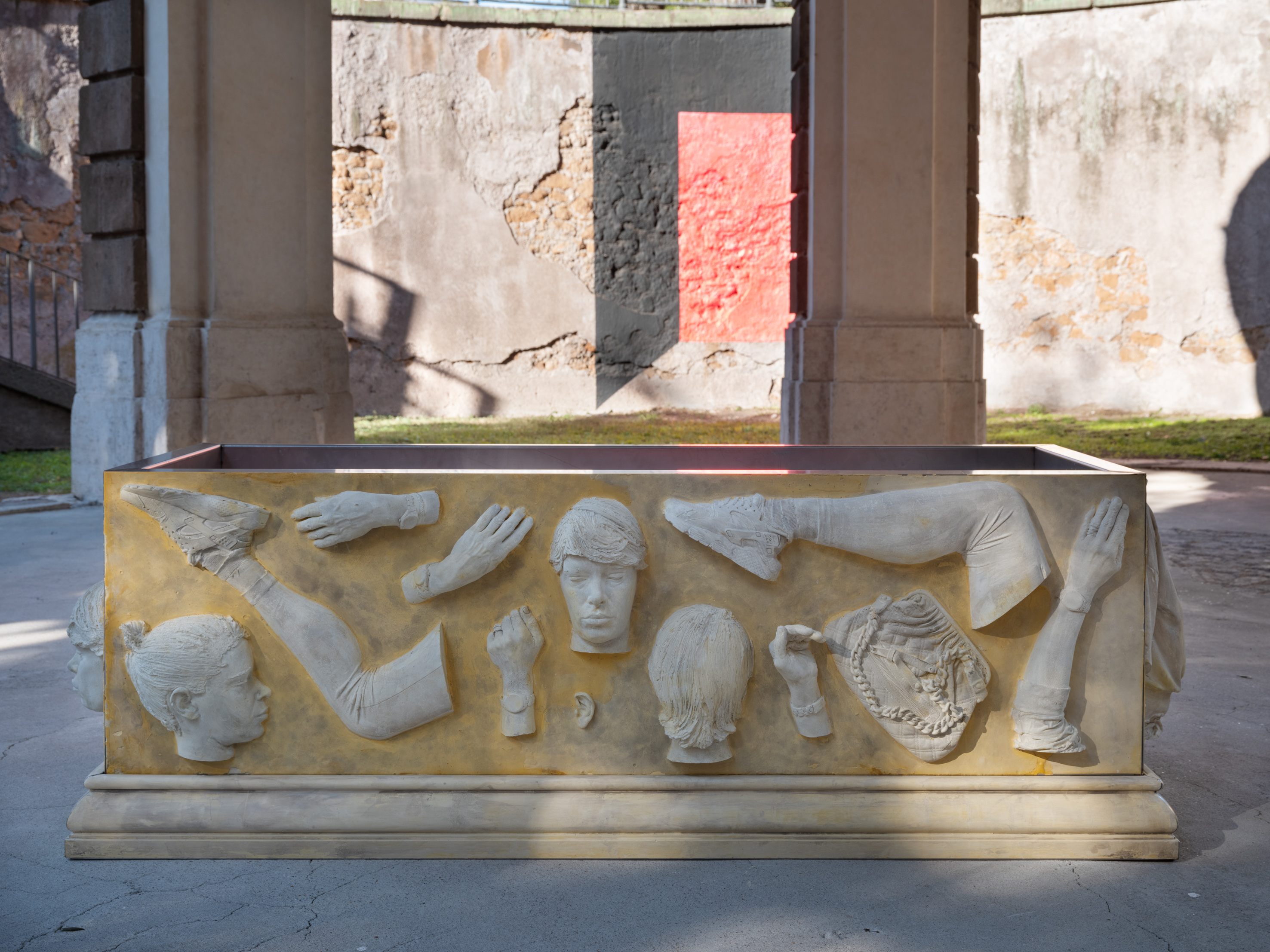 Lili Reynaud-Dewar presented Sarcophagus (2025), a site-specific work composed of casts of her body that interweaves memory, identity and representation, in dialogue with the Loggia’s friezes and decorations.