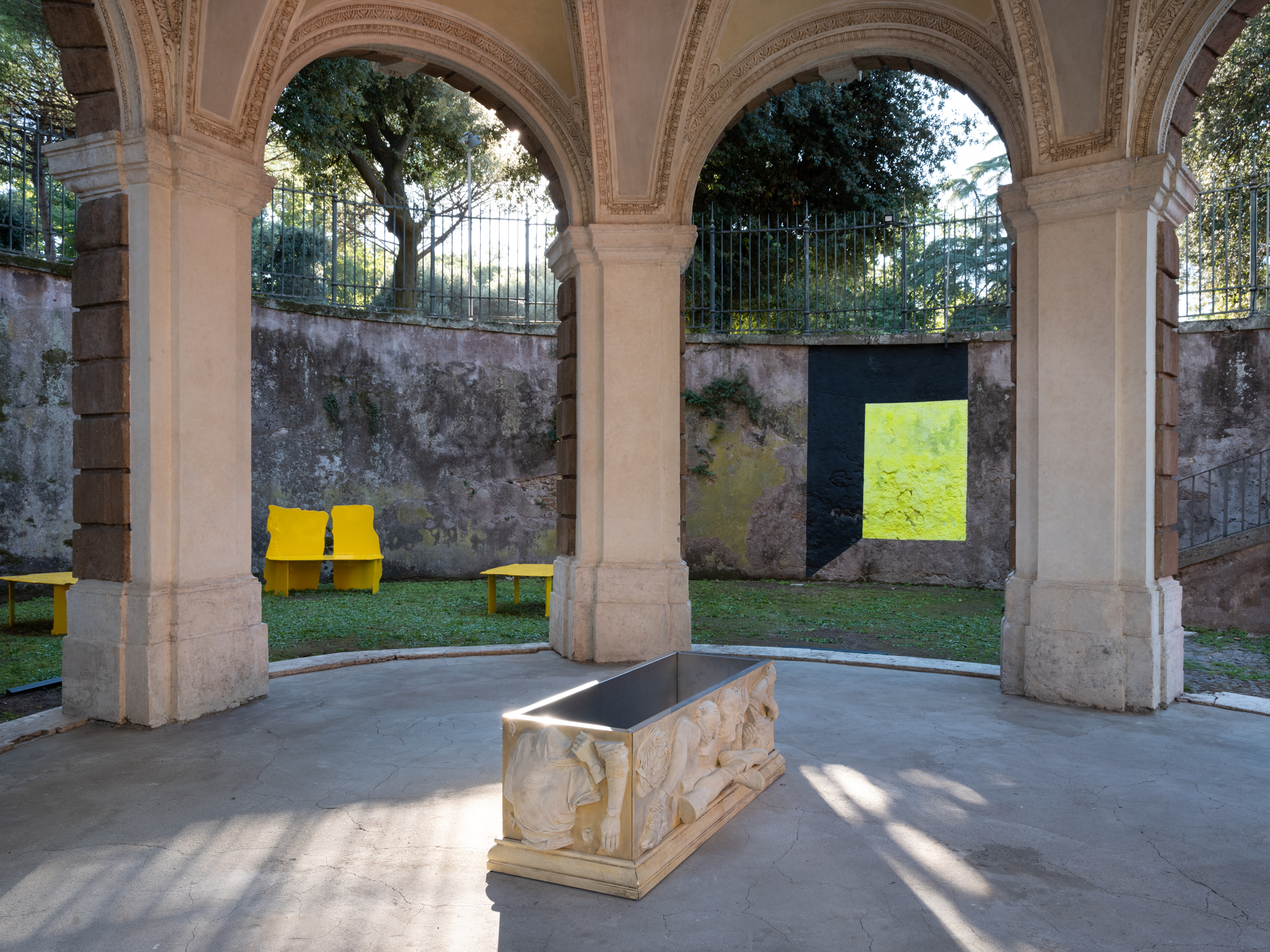 Lili Reynaud-Dewar presenta invece Sarcophagus (2025), un’opera site-specific composta da calchi del suo corpo che intreccia memoria, identità e rappresentazione, dialogando con i fregi e le decorazioni della Loggia.